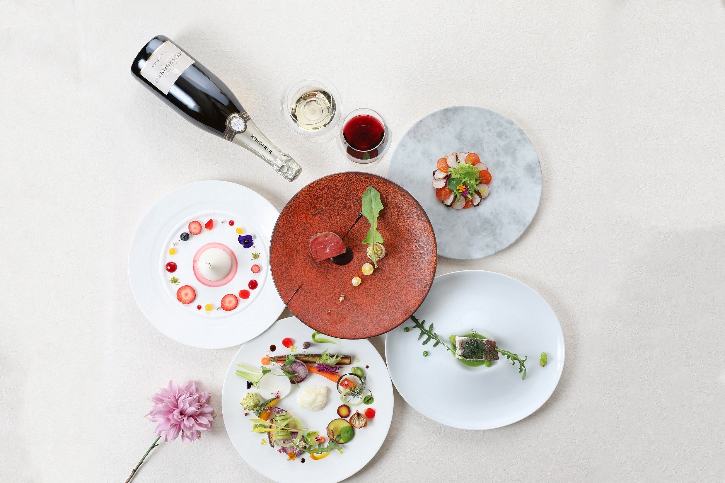 「ポタジェ」(potager)は、菜園、家庭菜園という意味。ポタージュスープを作るための野菜・ハーブなどを育てたことに由来するフランス語の菜園が語源で、ディナーコースをより多くの女性に楽しんでいただきたいというシェフの想いから、試作・検討を経て完成した一品です。野菜により調理法を変え、様々な食感や味を楽しめる様に工夫し、女性シェフならではの感性で見た目も華やかで繊細に仕上げました。