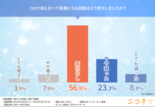 さらに、コロナ前後で笑顔の回数が変化したか伺っていきたいと思います。