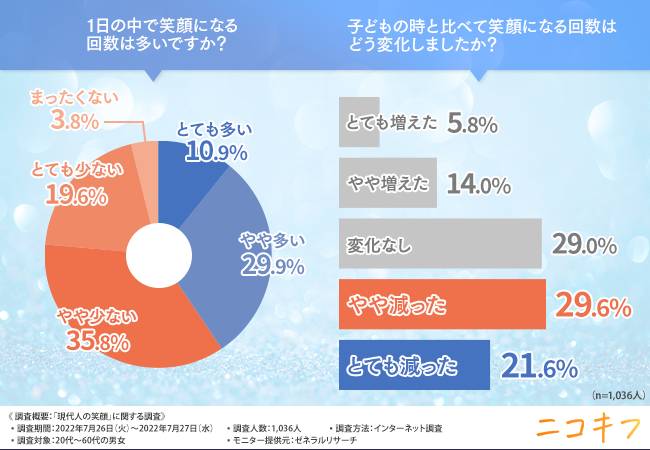 そして、約半数の方が、子どもの頃に比べて笑顔の回数が減ったと回答しました。