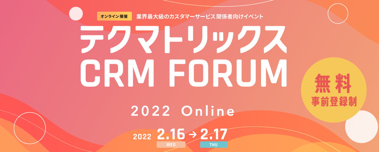 日本最大級のカスタマーサービス関係者向けイベント「テクマトリックス CRM FORUM 2022 」オンラインで開催~ヒト×テクノロジーで次の未来へ~