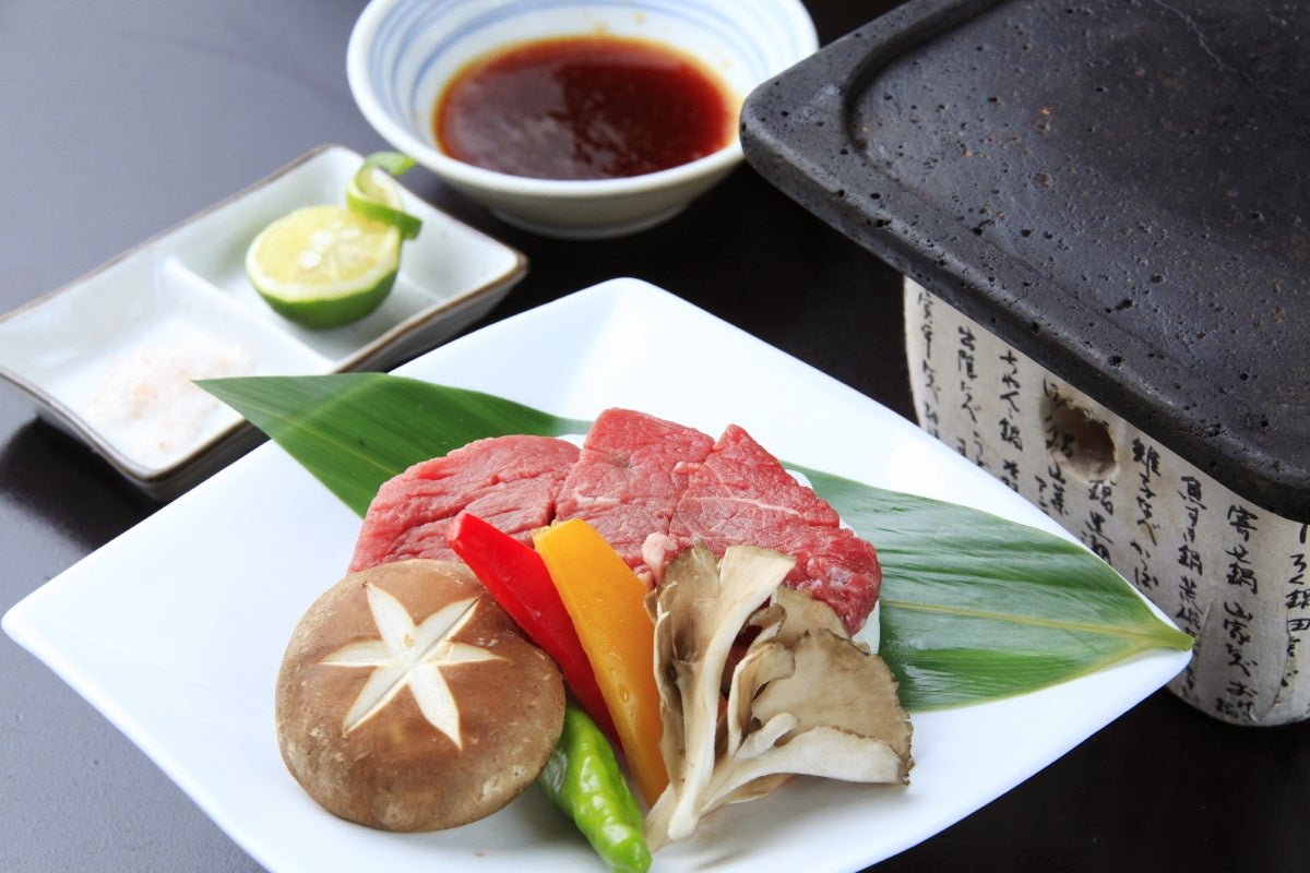 このプランでは、香り豊かな【松茸の土瓶蒸し】と【国産牛溶岩焼き】をご夕食にご用意致します。