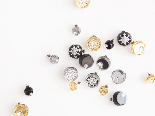アクリルにジルコニアを閉じ込めたピアス/イヤリング。