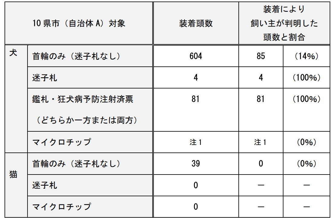ただし、動物救護施設に保護されたペットのうち、鑑札や迷子札を装着していたペットは飼い主が100%判明しています。*