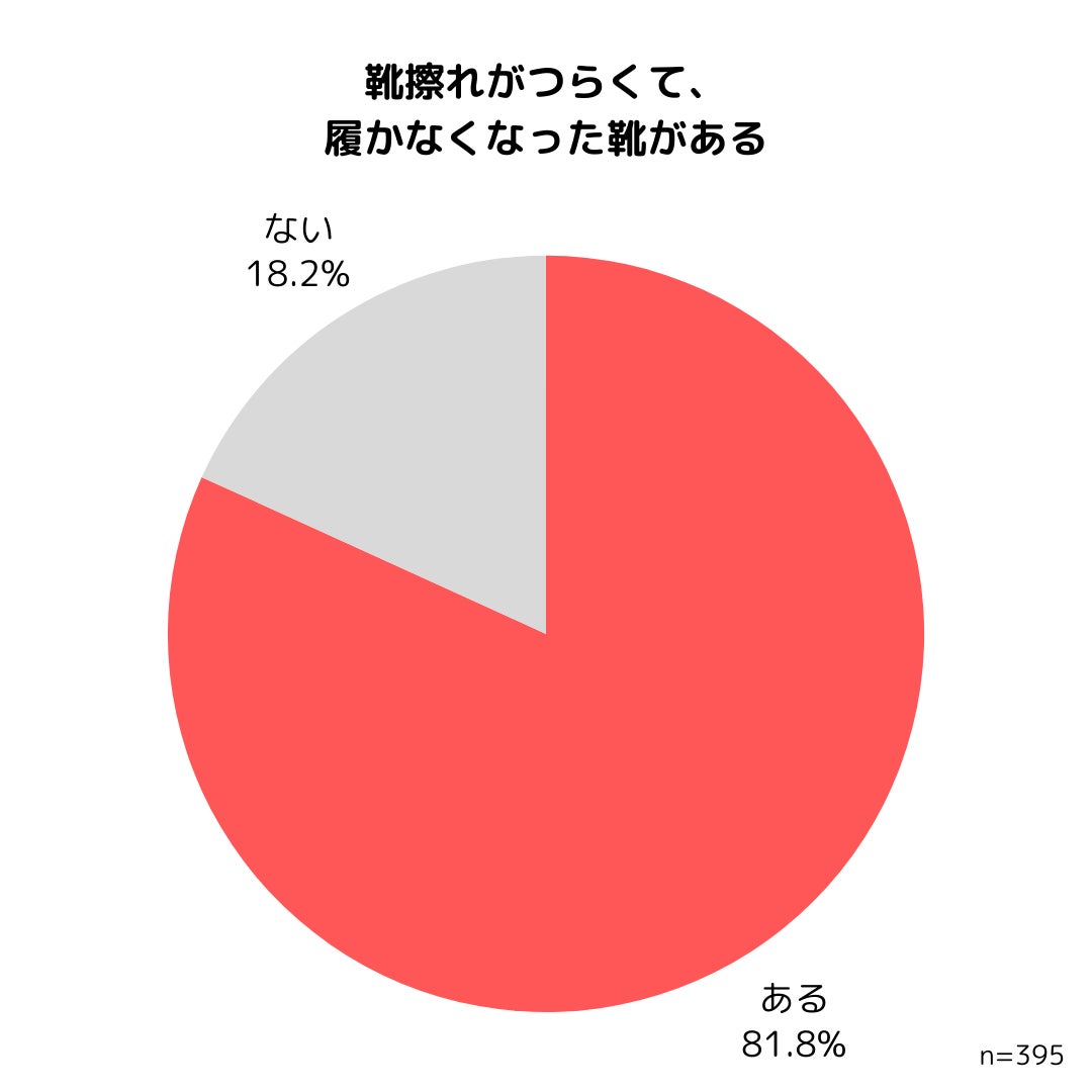 「靴擦れがつらくて履かなくなった靴がある」方は約80%、「靴擦れがつらくて、しかたなく外出途中で替えの靴を買ったことがある」方は約40%もおられることが分かりました。