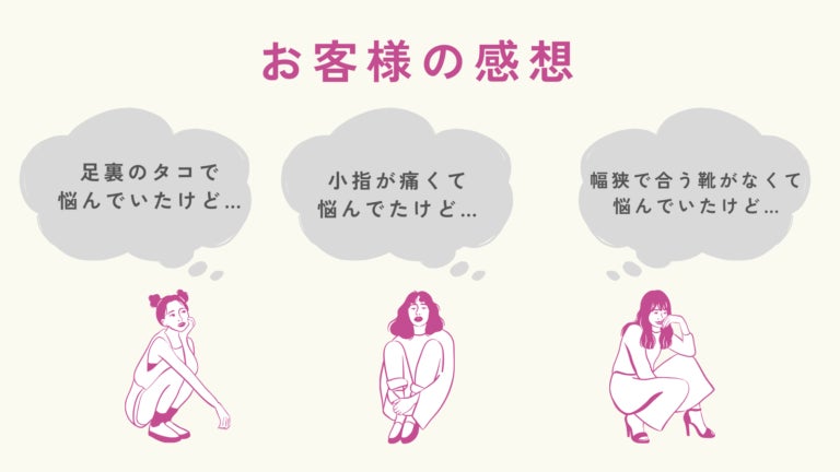 ・「今後、どんな風に靴を選んだ方がいいのか」など教えていただいたので、次の靴選びから実践したいと思いました。ぺったんこの靴が合わないと思っていた原因がわかってびっくりしました。