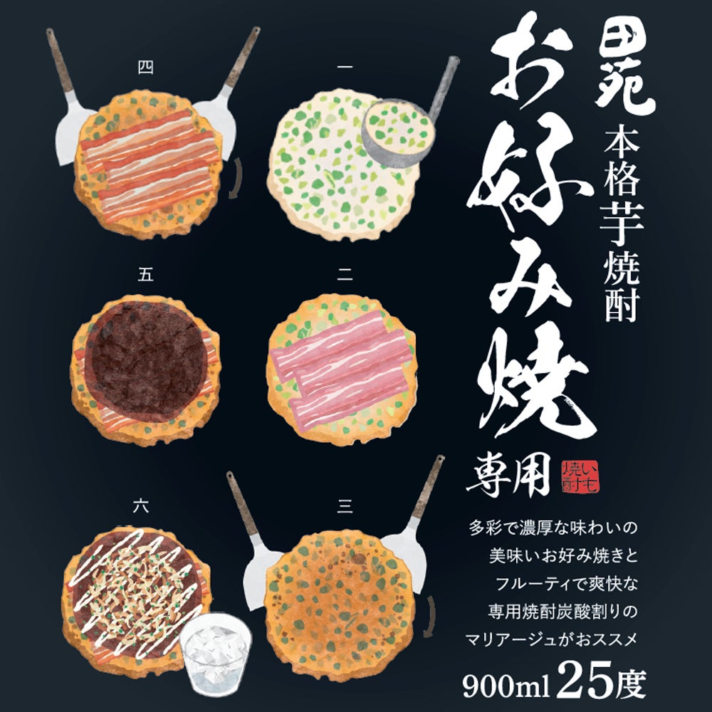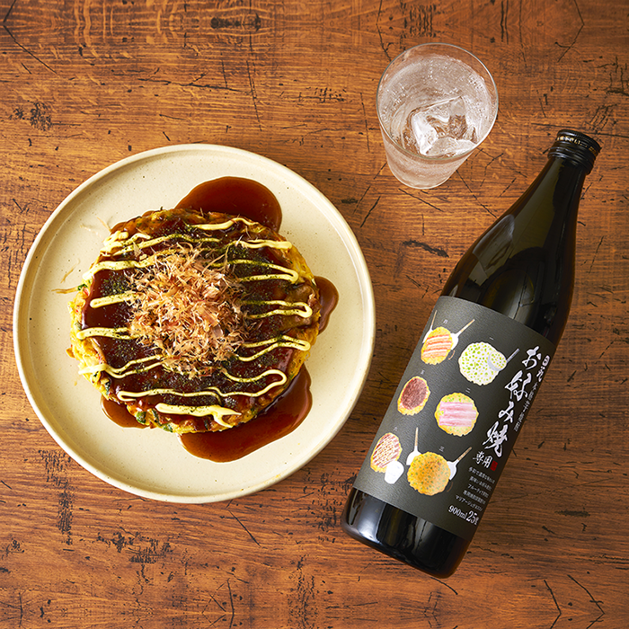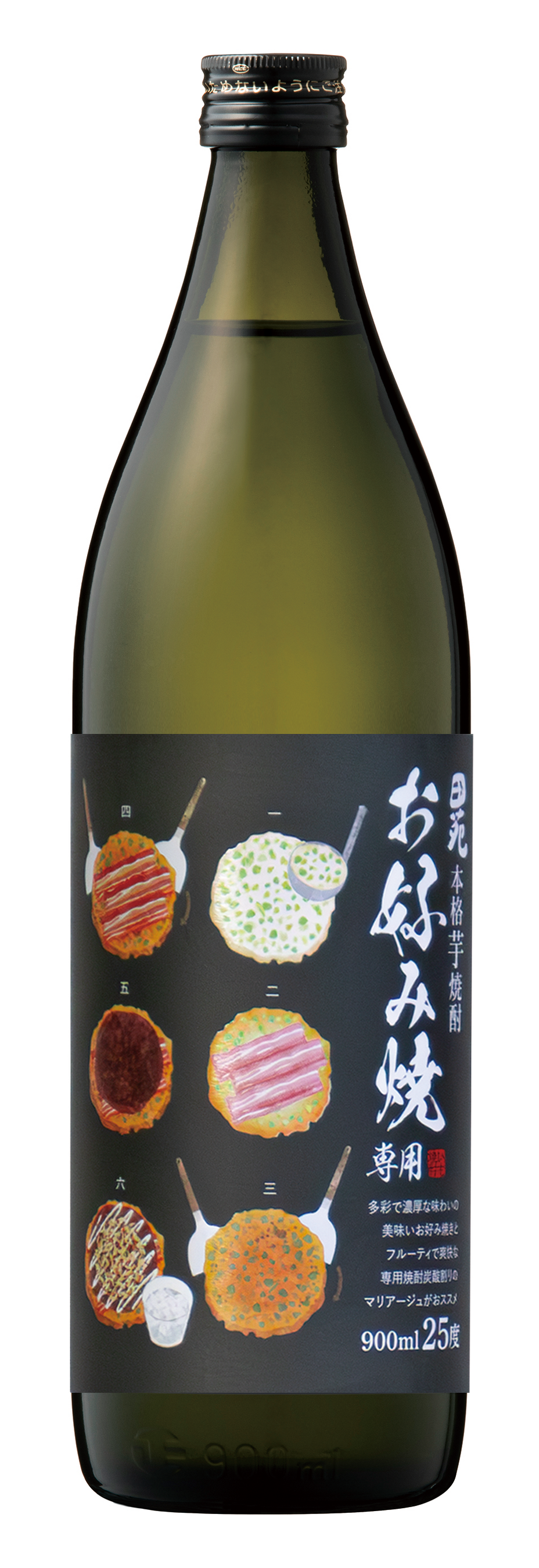 『お好み焼き専用焼酎』は、お好み焼きの味を邪魔せず引き立たせるため、フルーティでキレのある優しい甘さを実現した芋焼酎です。同社が樽貯蔵焼酎で培ったブレンド技術をいかした焼酎で、特長がありながらバランスの取れた酒質に仕上げたものです。