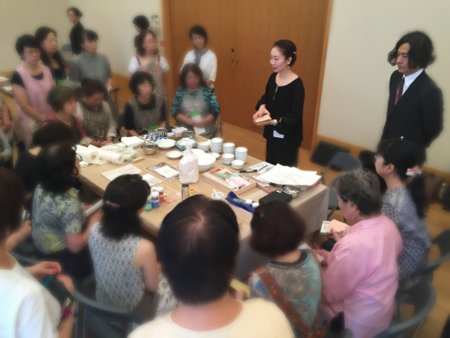 再興第102回院展会場でのギャラリーツアーの後にスタジオにて簡単な日本画の制作体験をします。