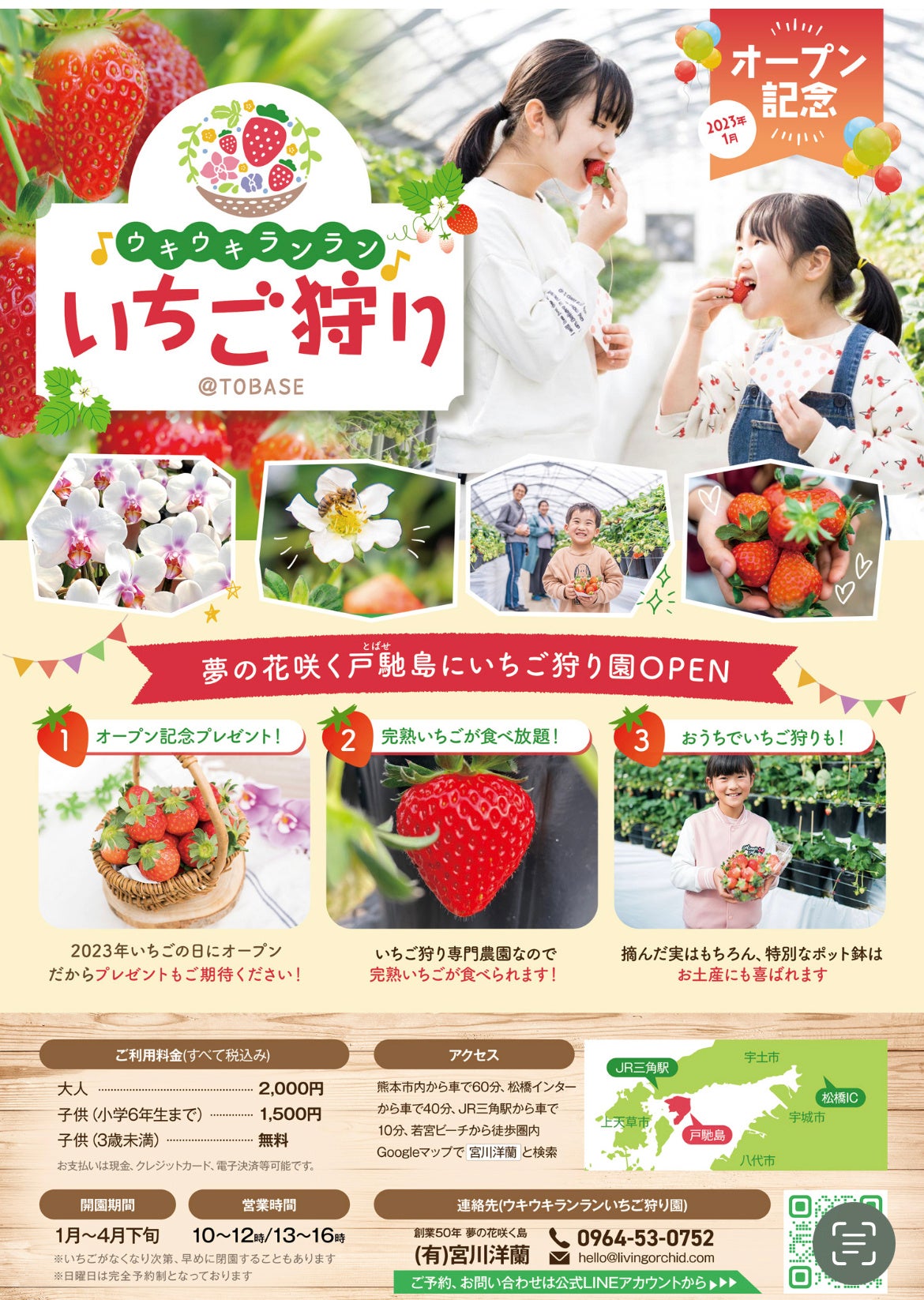 「お客さんの来ない、静かな冬の島を元気にしたい!」として熊本県宇城市(うきし)戸馳島の洋ラン農家による、天草方面で初となるいちご狩り園をオープンします。