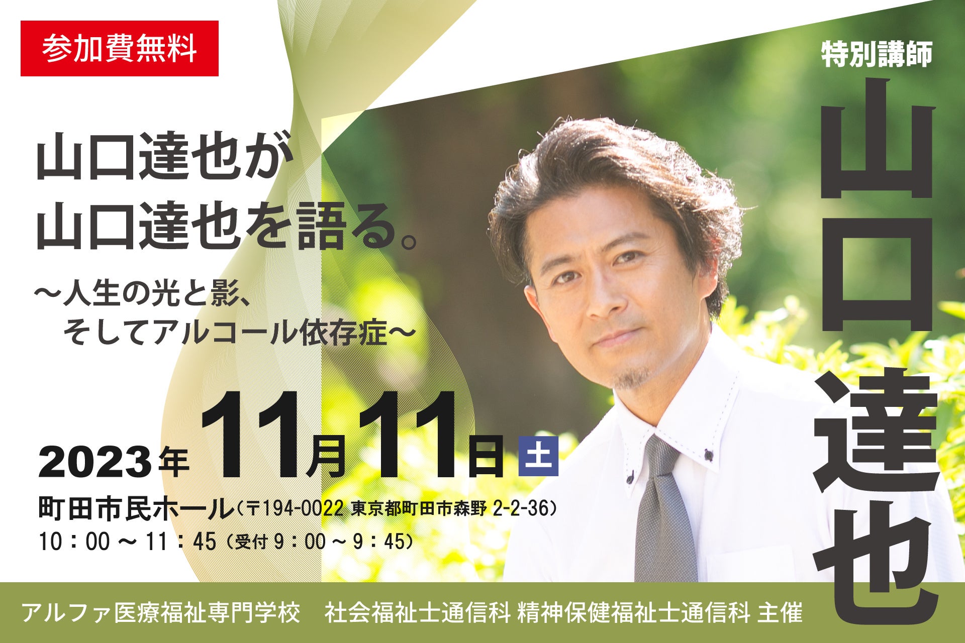 山口達也氏、アルファ医療福祉専門学校にて講演会!「山口達也が山口達也を語る~人生の光と影、そしてアルコール依存症~」11月11日(土)開催