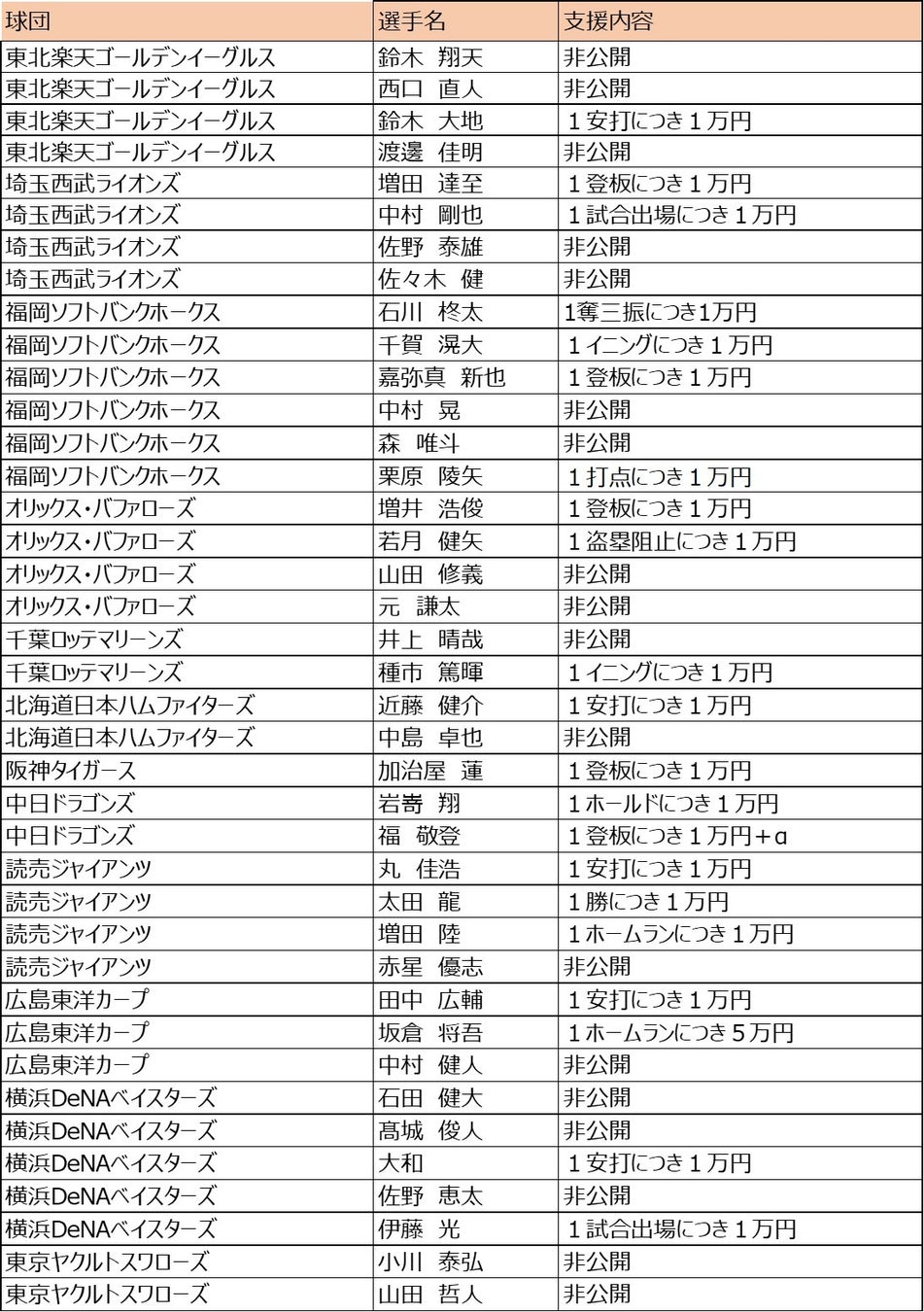 ~ 12球団のプロ野球選手 総勢39名が支援!! ~