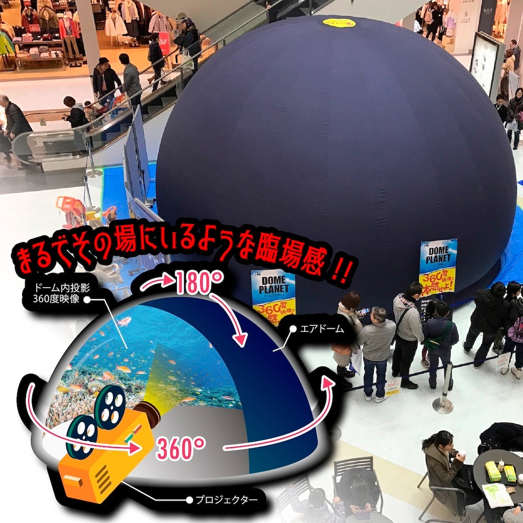 360度映像で驚きの体験を届ける株式会社スペースクリエイションズ(本社:神奈川県川崎市、代表取締役:佐藤 誠史郎)は、360度映像をドーム内に投影することで、まるでその場にいるかのような映像体験ができる没入体験アトラクション「ドームプラネット」の最新作を3月15日よりリリースいたします。