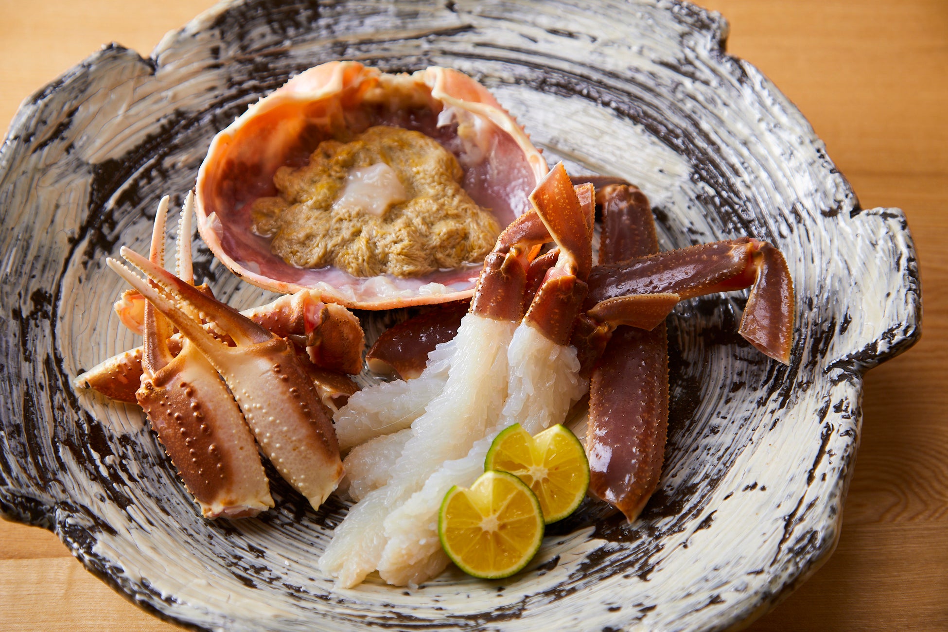 今回提供する「松葉蟹尽くしコース」では、最高級の松葉蟹をふんだんに使った贅沢な料理をご用意しました。目の前で料理人が捌くライブ感と季節の味わいを堪能ください。