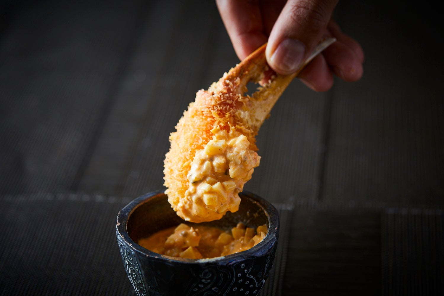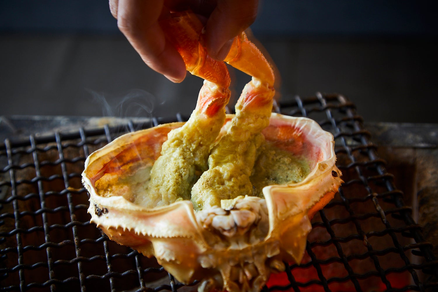 ここでしか味わえない新鮮なカニに加え、数千匹に1匹の確率でしか水揚げされない「幻の蟹」とも言われる希少な「黄金蟹」や、焼き上げたカニの殻を煮出したカニ酒を楽しめるのも『かにじぇんぬ 銀座』ならではの体験です。提供するカニは、その日水揚げされたものが産地直送で届くので、東京にいながら産地同様の鮮度をお楽しみいただけます。