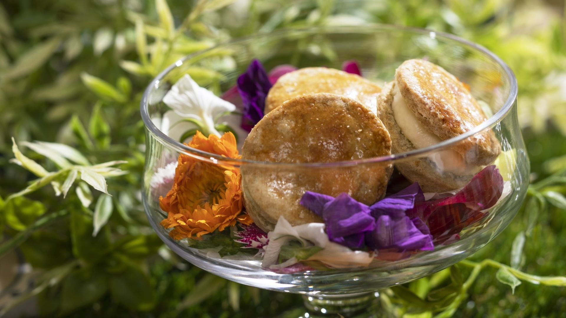ビワの葉 クッキー&スコーン / びわコンフェチュール、ミックスベリーソース、クロテッドクリーム