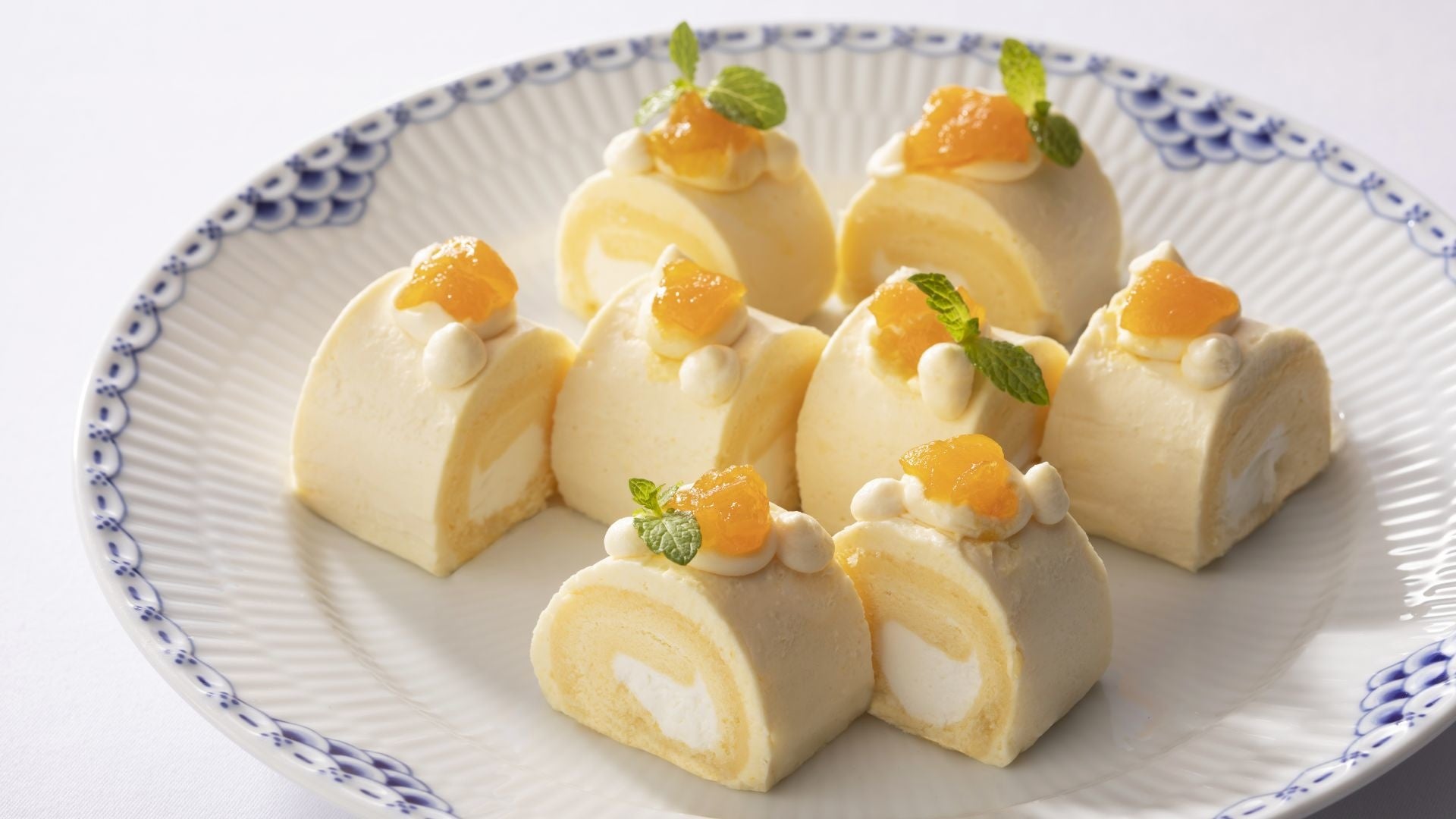 フレッシュビワ、ビワロールケーキ、ビワとアーモンドのフィナンシェをはじめ、日替わりで旬のビワを使ったスイーツ10種類と通年メニューの4種類のケーキをお楽しみいただけます。