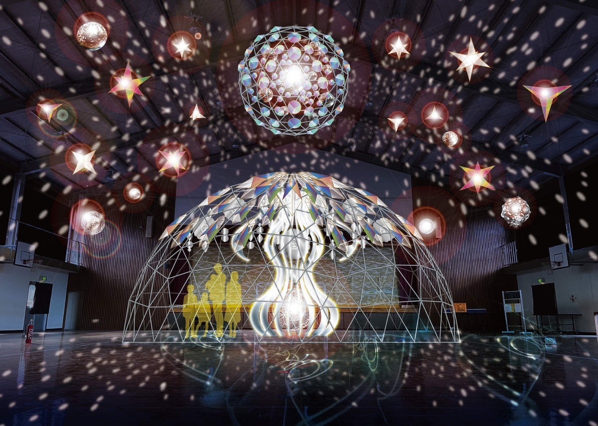 アート集団MIRRORBOWLERによる大型アート作品を展示し、光を使ったアート作品を体育館いっぱいに表現します。