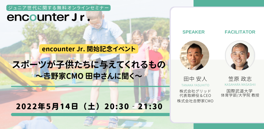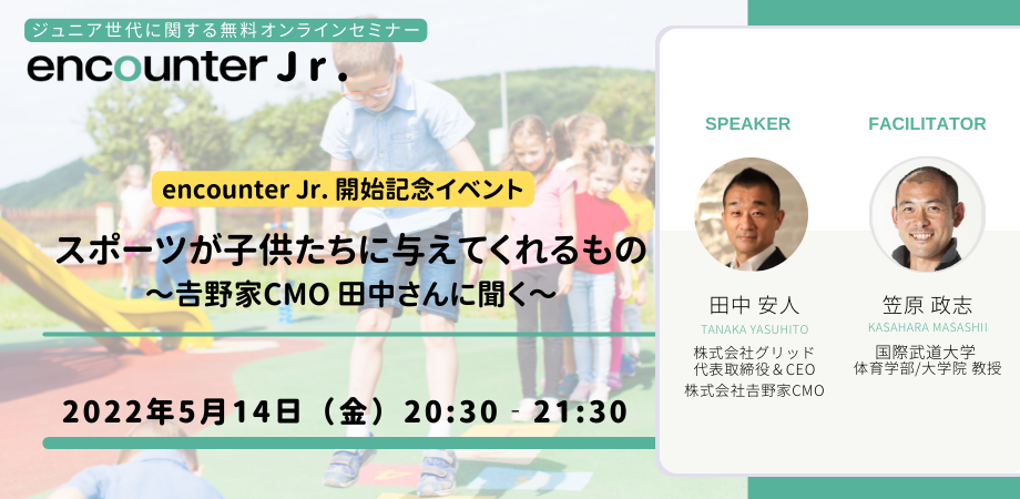 株式会社encounter(東京都中野区、代表取締役:岩本航,以下encounter)は、encounterの強みとするセミナー事業をジュニア世代のスポーツに関わる全ての方へ届けるために、新シリーズ「encounter Jr.」をリリースいたします。
