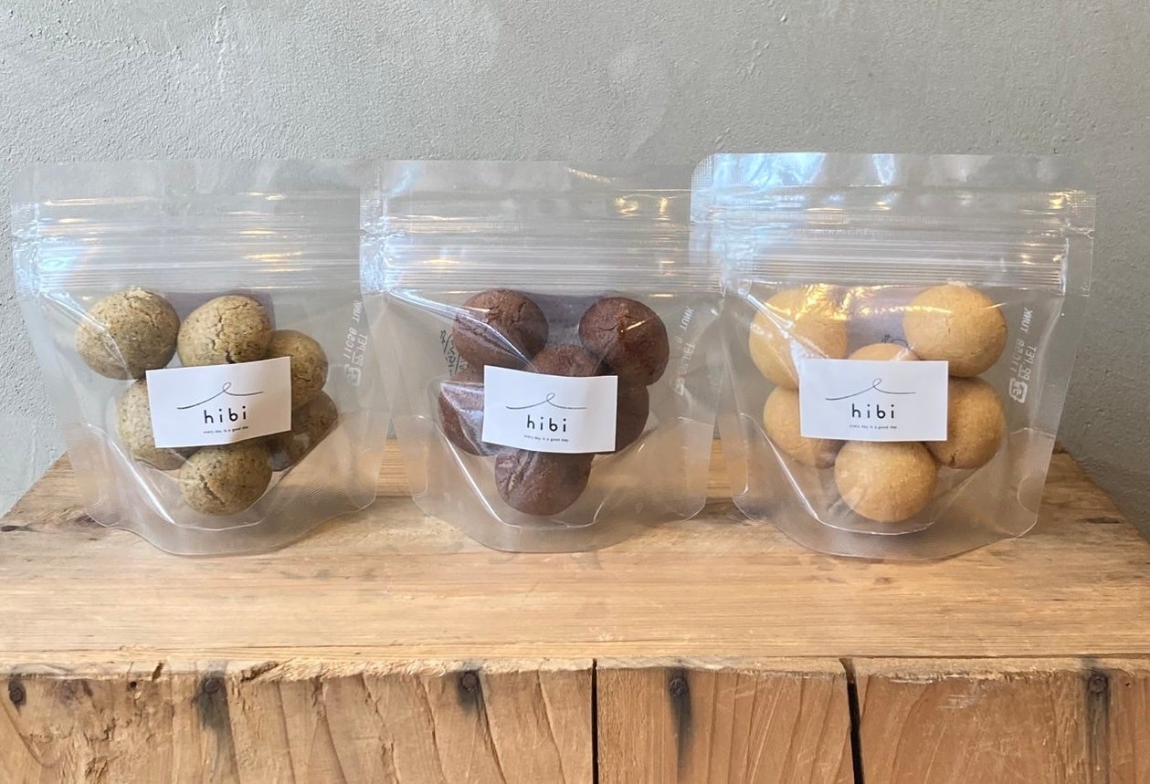 シンプルな材料で、素材の味を生かしたhibiのお菓子は毎日のおやつにもぴったり。食べるとふわっと気持ちがやわらぐような優しい味で、「もう一個」とつい手がのびる、そんなお菓子を展開していきます。
