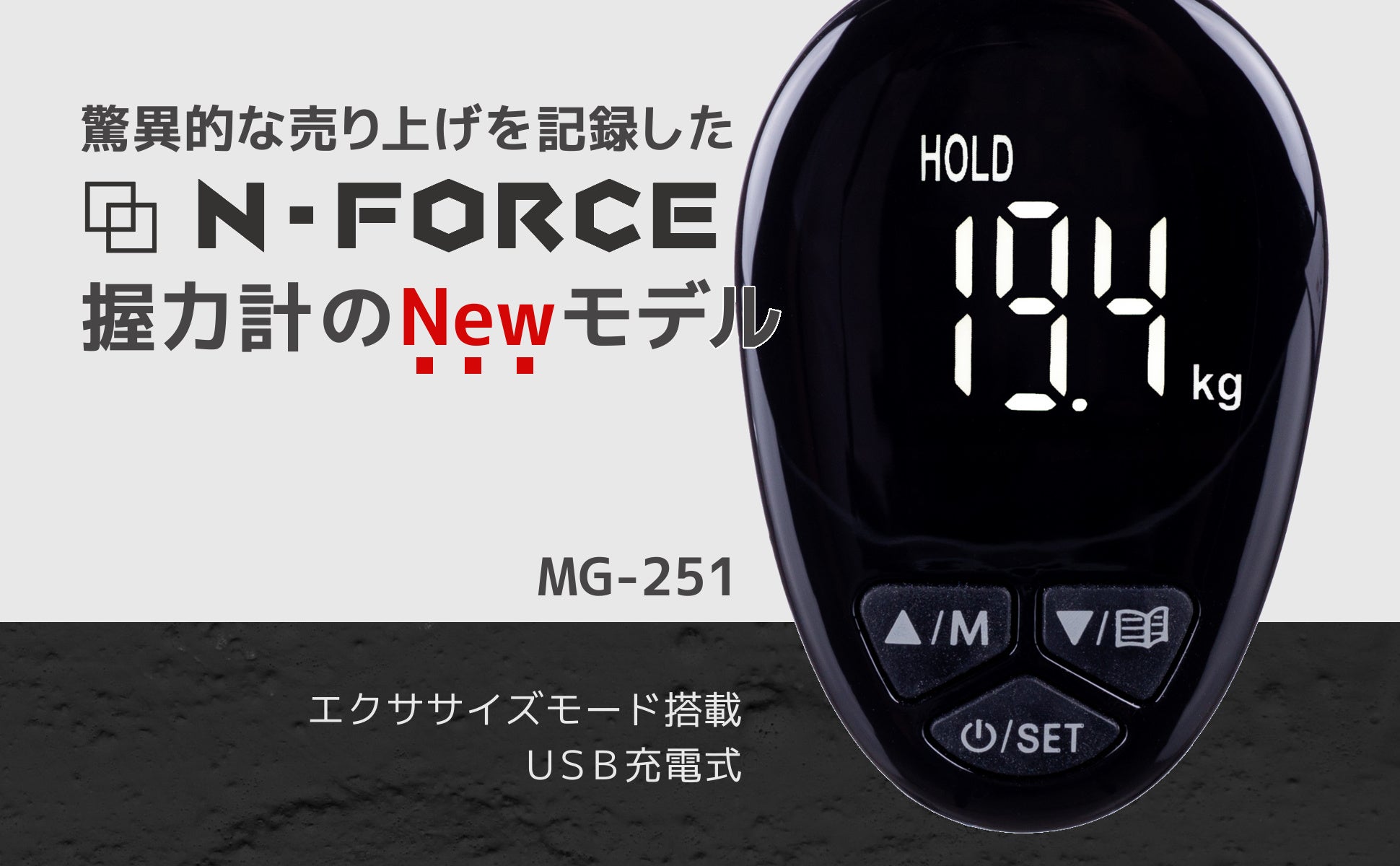 『 あなたの握力は何kg? 』握力測定はもちろん、トレーニング機能まで搭載した、今までになかった画期的な握力計【MG-251】が登場!N-FORCE(エヌフォース)