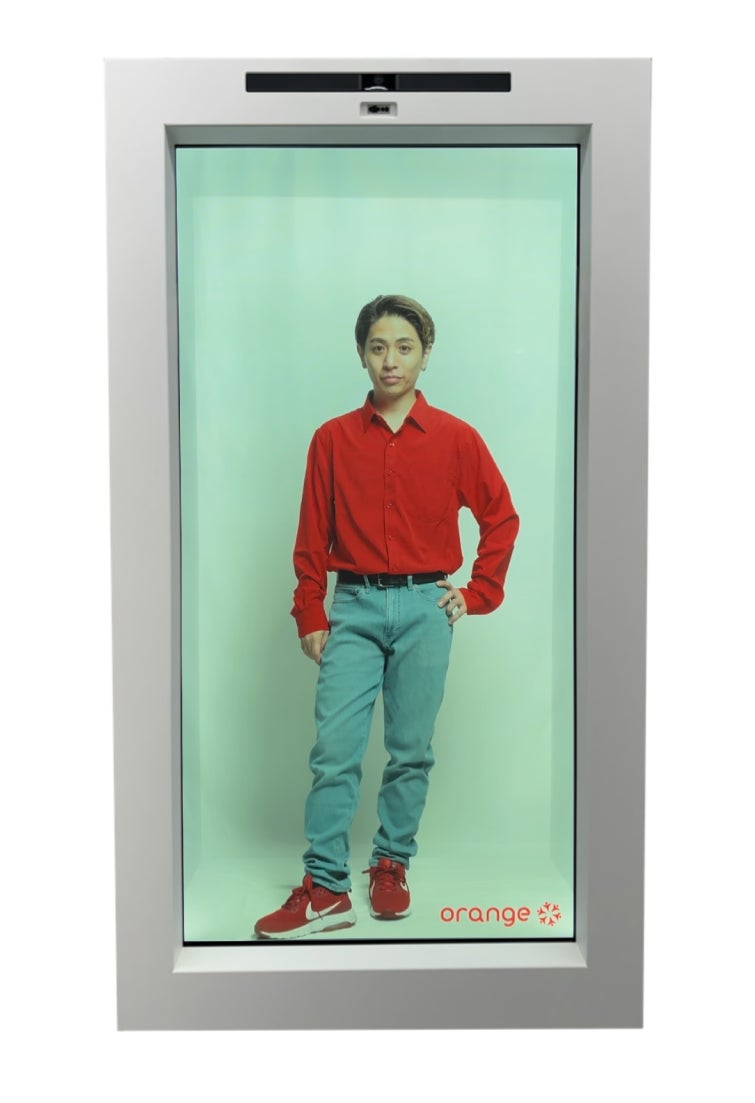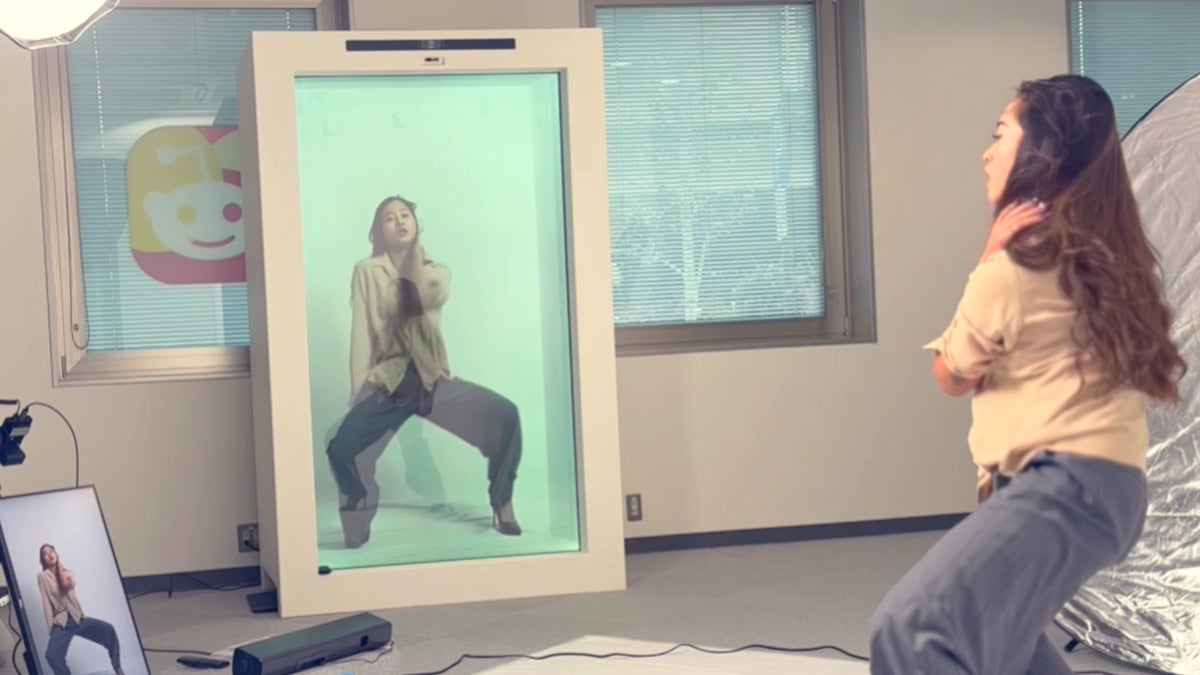 投影する映像は1台のカメラで撮影された一般的な映像フォーマットを使用し、まるで箱状のデバイスのなかに実際の人間が入っているかのような体験を実現します。