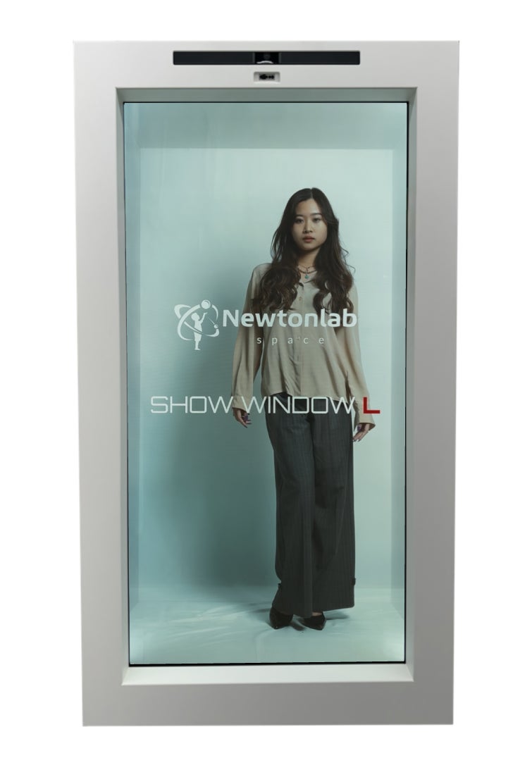 「SHOW WINDOW」シリーズから先行して国内展開を開始する「SHOW WINDOW L」は、人物を等身大で投影できる86インチの透過LCDディスプレイを搭載したモデルです。