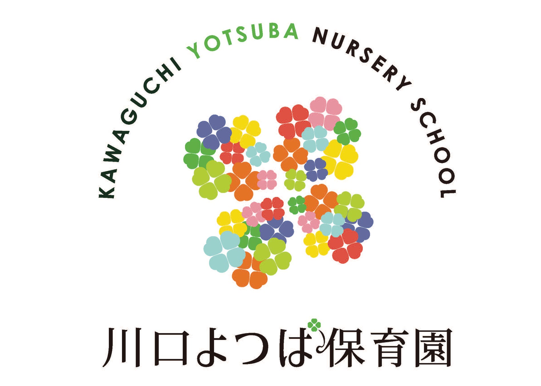『カラーを見つける』園児のそれぞれのカラーを見つけられる保育園であってほしいという想いからコンセプトを設定しました。それぞれのカラーを持つ子ども(=幸せ)があつまることによって「川口よつば保育園」という大きな幸せになるイメージをロゴで表現しています