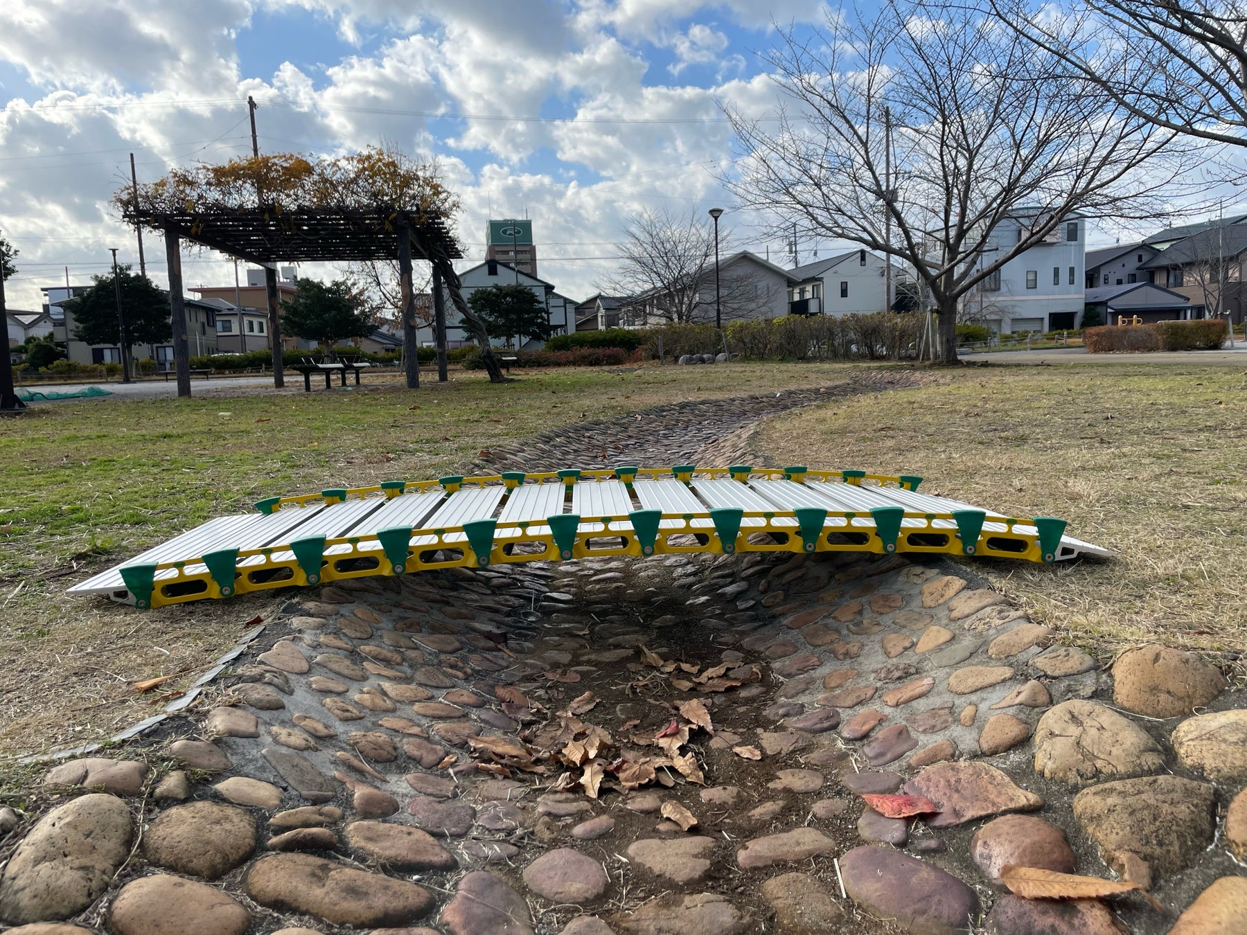 分離帯などの障害物をまたぐ使い方ができるのも、一般的なスロープにはない特徴です。