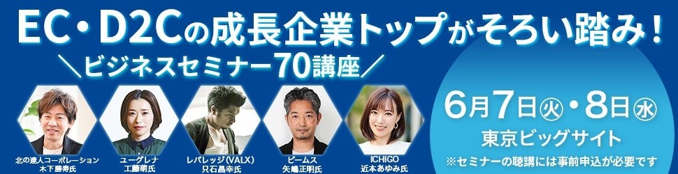 ①EC・D2Cの成長企業や、無店舗販売の事業拡大のノウハウを持つ専門家、コンプライアンスの専門家などがセミナーに続々登壇。