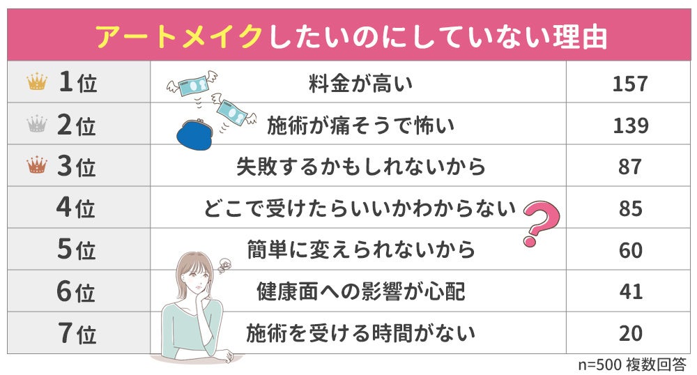 ・アートメイクをしたいのにしていない理由1位は「料金が高いから」