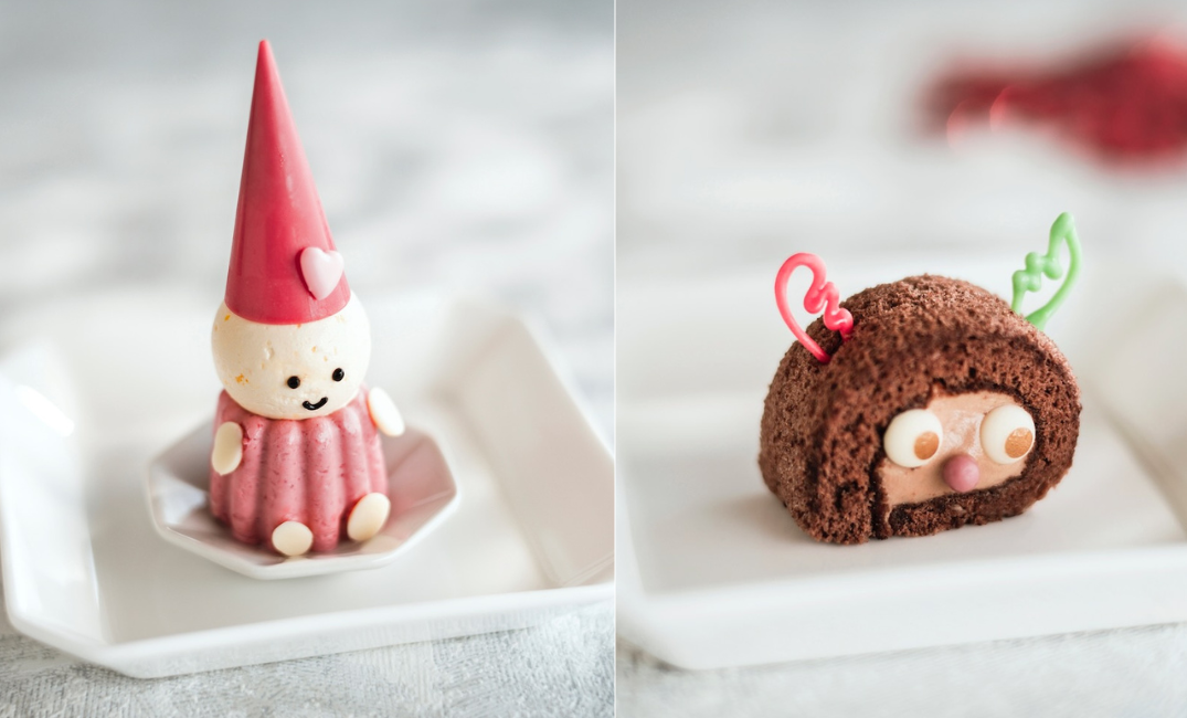 当バージョンの主人公は、北欧に古くから伝わる妖精「トムテ」です。「トムテ」とは、諸説ありますが、家の守り神やサンタクロースの役目もする妖精などと言われています。その仲間たちの「トナカイ」や「スノーマン」、「プレゼントBOX」など、パティシエの想像力と繊細な手仕事によって創られたスイーツの数々は、いつまでも眺めていたくなる程の出来栄えです。(以下にスイーツの一部と、それにまつわるストーリーをご紹介)