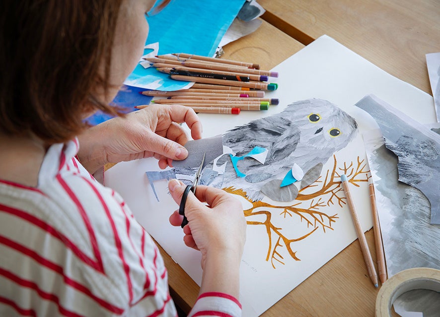 フィンランドの最も優れた絵本に贈られる「ルドルフ・コイブ」賞の受賞経験がある彼女は、コラージュで独特の世界観を作り上げています。日本でも『ぼくって王さま』(講談社刊)や『くまのムル はじめてゆきをみる』(誠文堂新光社刊)が発刊され人気を呼んでいます。フィンランドのアトリエで彼女の作品がどのように生まれるのかを聞きました。