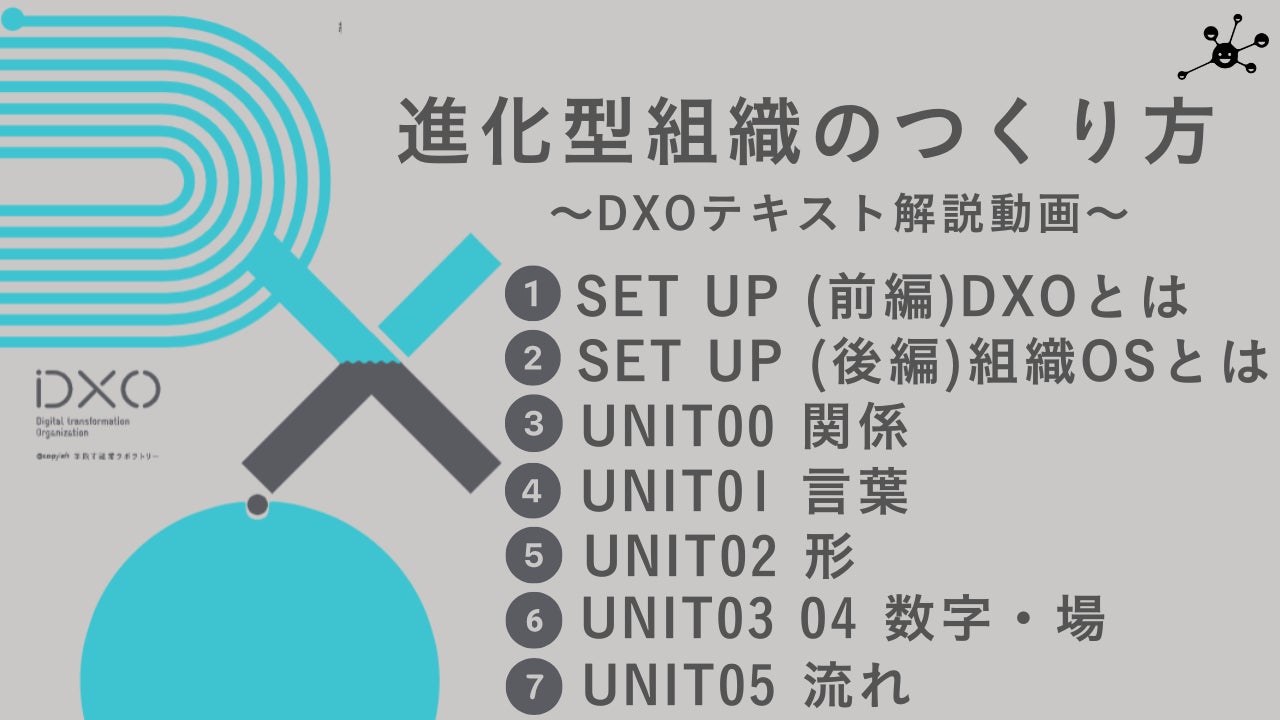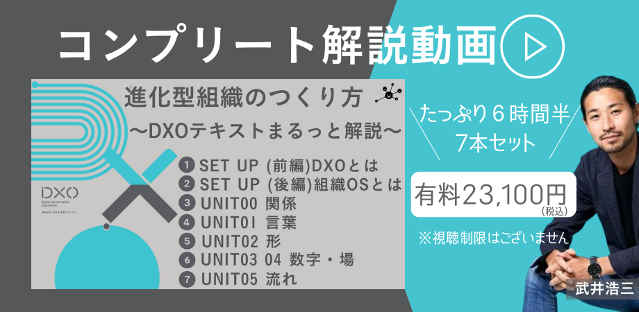 動画では、DXO開発の経緯や、進化型組織が生まれた時代背景、これからの組織づくりのポイントなど、DXOテキストの詳細な説明はもちろん、DXOテキストに書ききれなかった部分も含めて、まるっと解説いたします。
