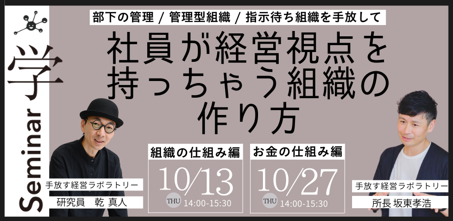 進化型組織・自律分散型組織のセミナーも無料で開催しております。