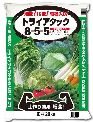 これまで活用しきれていなかった牛ふん堆肥と化成肥料から成る指定混合肥料のトライアタックは以下、3つの特徴を有します。