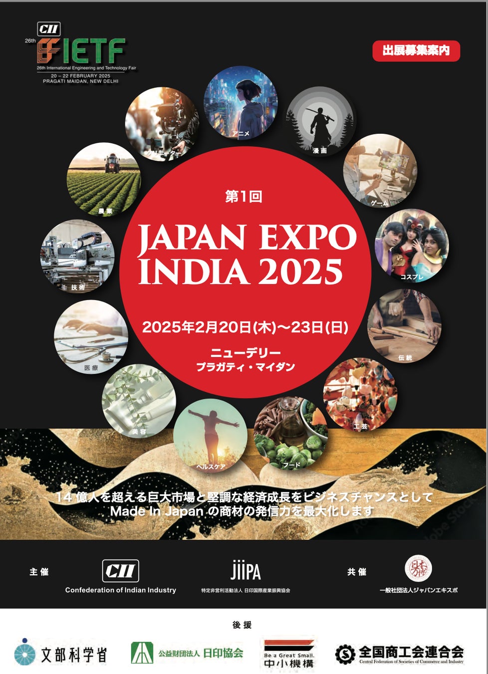 「Japan Expo India 2025」開催につき、株式会社5-DIMENSIONS(所在地:東京都、代表取締役:木ノ内 謙)は、公益財団法人日印協会(jiiPA)および合同会社ジャパンシーズと提携し、当イベントに出展者の誘致を行う。