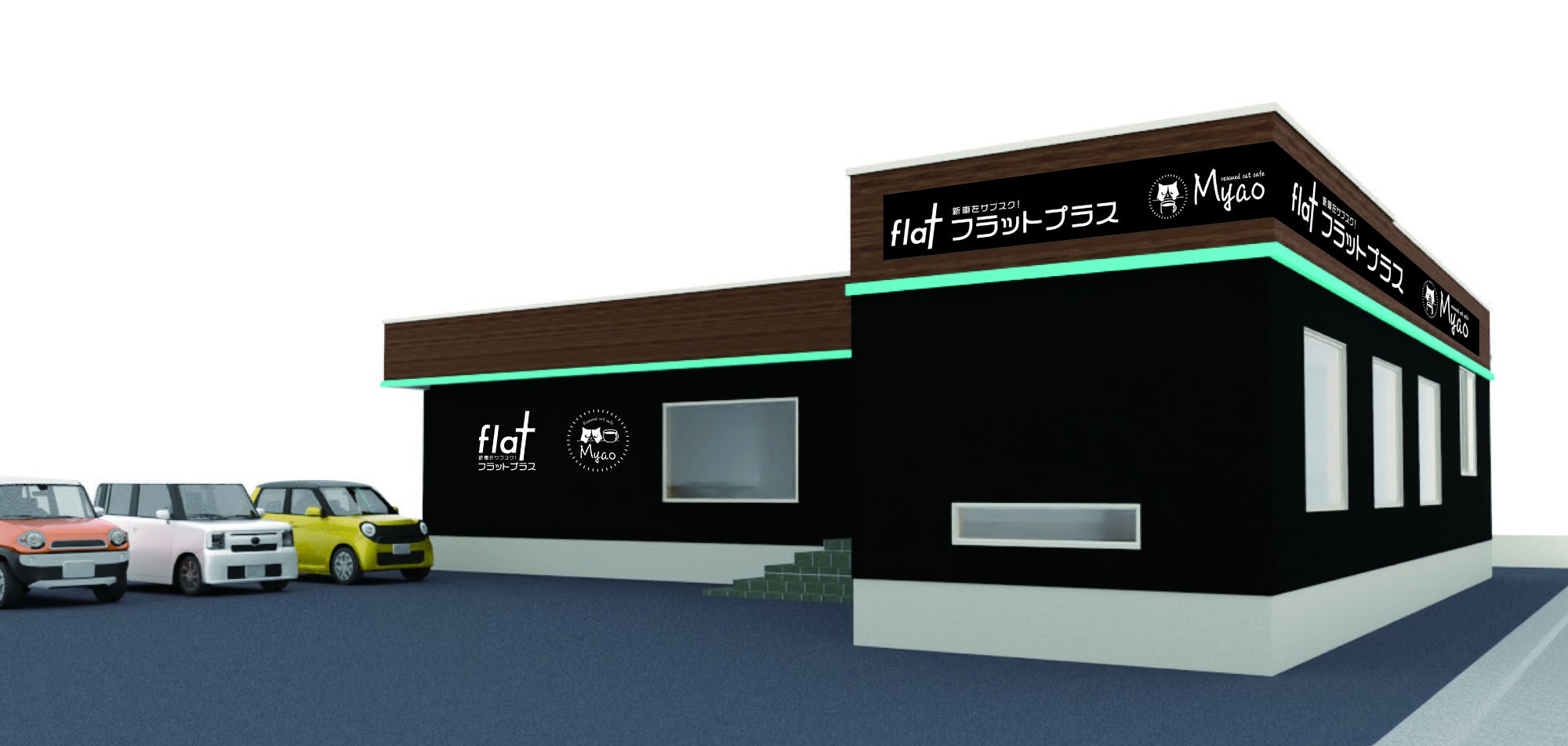 猫カフェ併設の新車のサブスク事業拠点「フラットプラス×Myao 武雄店」が