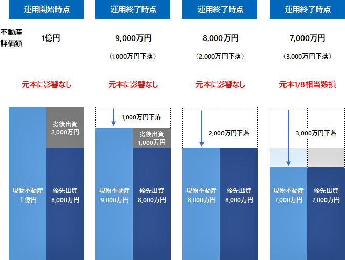 下落額が劣後出資部分を超過した場合には、優先出資者の元本が毀損となります。