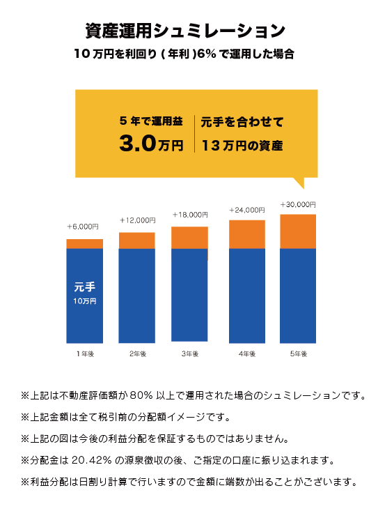 売却額の下落幅が20%以内であれば、お客様の出資元本に変動はございません。