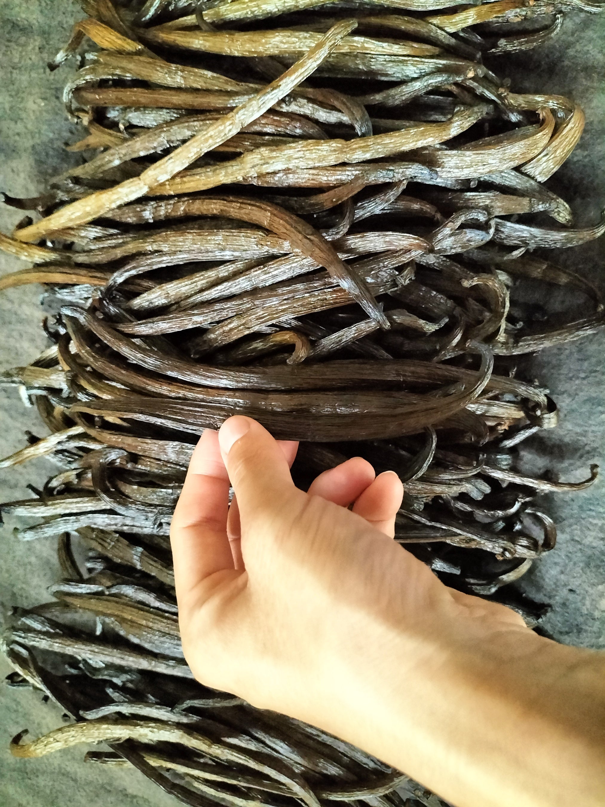 アマゾンバニラパウダーは、乾燥させたバニラの鞘とバニラの種を丸ごと粉砕してパウダーにしています。