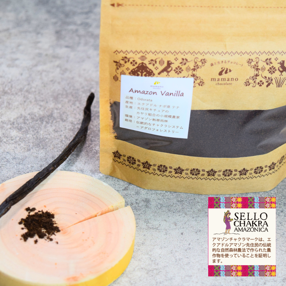 【Bean to Bar向け】 ママノチョコレートがエクアドルアマゾン原産100%ピュアアマゾンバニラパウダーの販売を開始。アマゾンチャクラ認証取得済み。