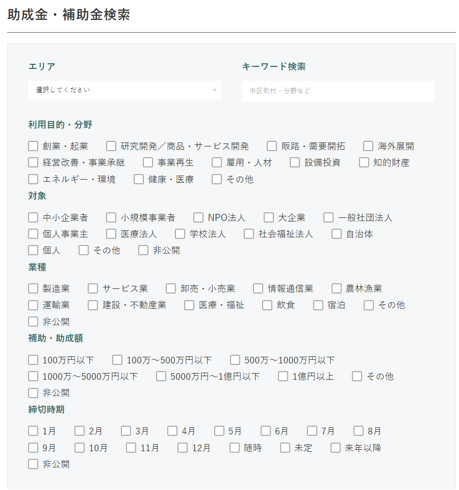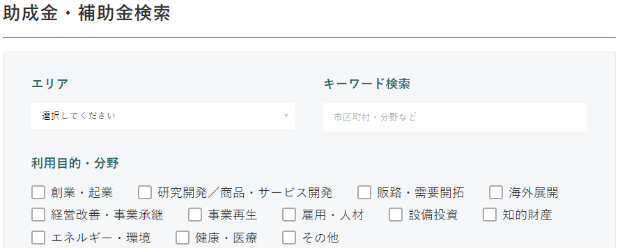 - 全国の官公庁、市区町村、財団協会の助成金・補助金情報を一括で検索!