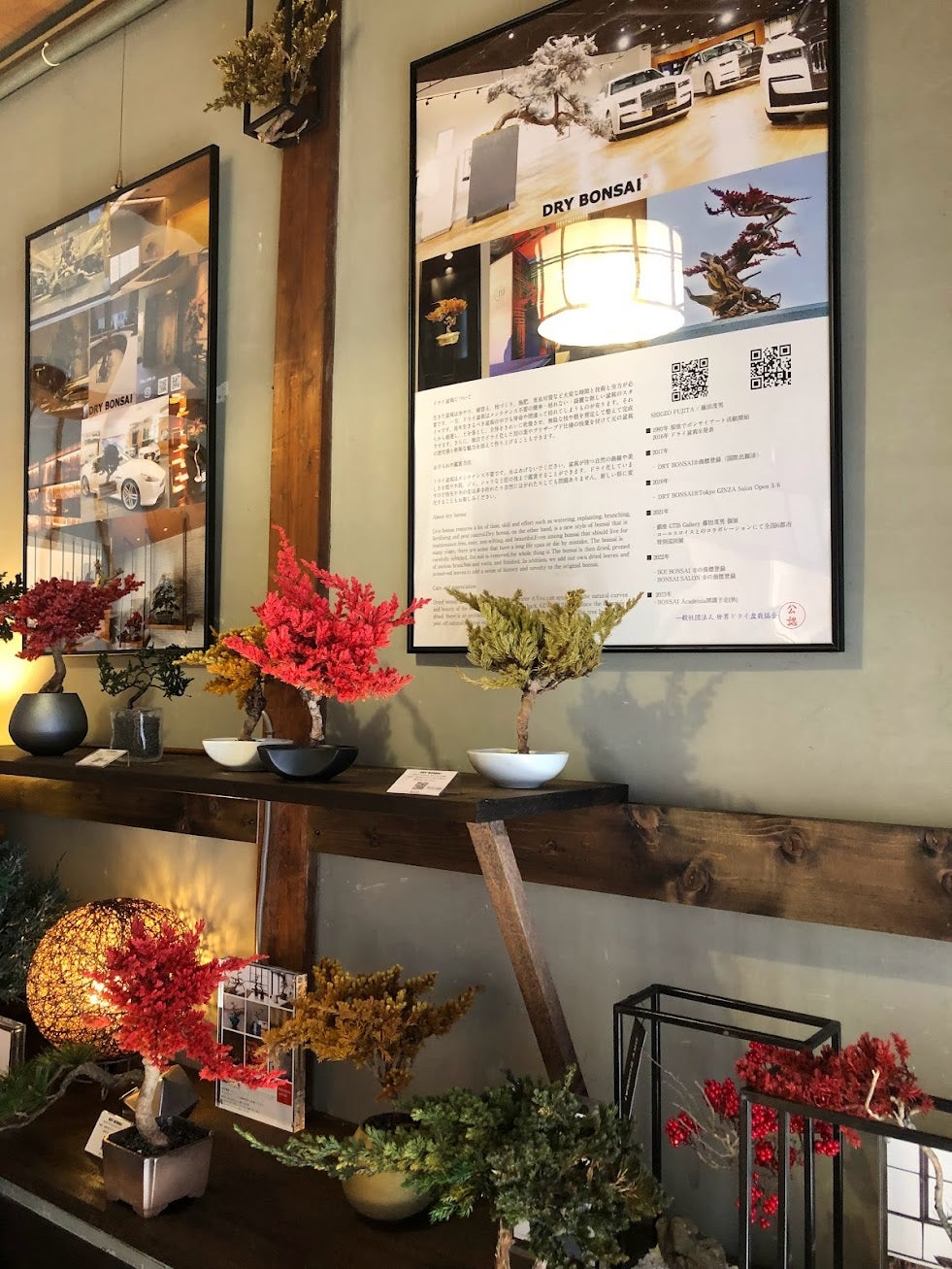 ドライ盆栽®の中でも持ち帰りやすいミニサイズから大型アート作品まで。京都サロン謹製・製作キットなども。すべて目の前で御覧になり購入できます。またBespoke DRY BONSAI®として自分好みのドライ盆栽のオーダーを承っています。ブランドオーナー・藤田茂男本人が製作する唯一無二なドライ盆栽®作品を手に入れることができます。(サイン入りブランドタグが附番されます)