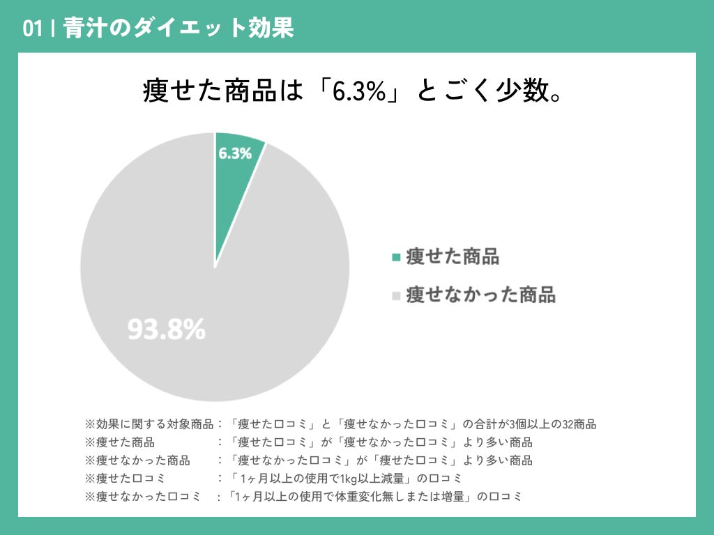 ・痩せたと報告された青汁商品は、全体の僅か6.3%に留まる
