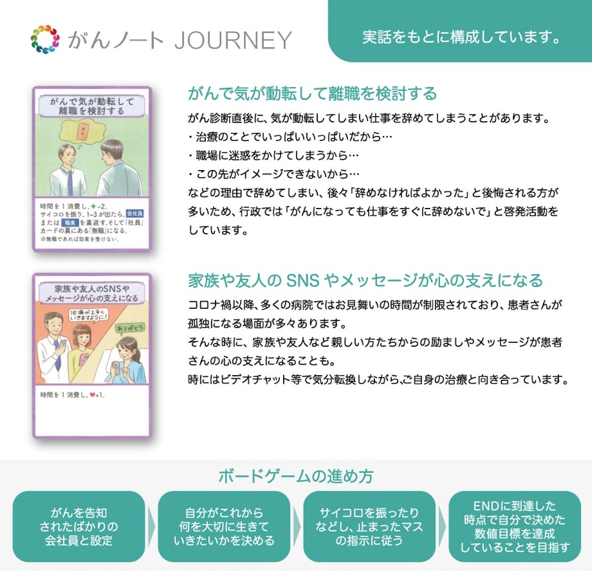 そしてたどり着いたのが、このボードゲーム「がんノートJOURNEY」という形です。