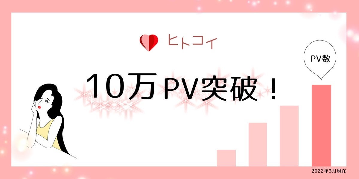 株式会社ヒトコイ(所在地:東京都港区、代表取締役:西田悠二)が運営する恋愛体験談メディア「ヒトコイ 〜ひとの恋愛のぞき見サイト〜」(https://hitokoi.com/)がリリース 2ヶ月目で月間10万PVを突破いたしました。