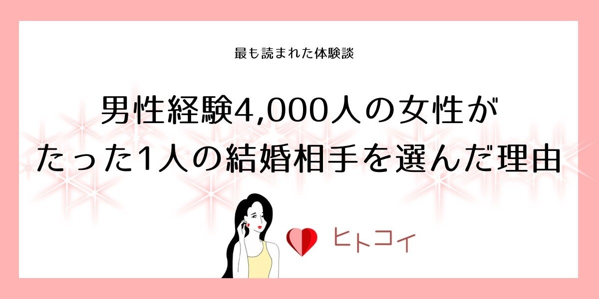 - 最も読まれた体験談は「男性経験4,000人の女性がたった1人の結婚相手を選んだ理由」