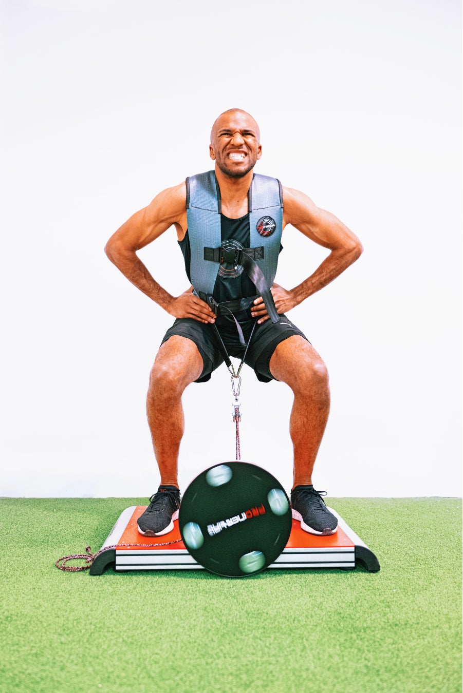 フライホイールによりこのを解決したPROINERTIALのマシンでは、最大筋出力や筋肥大の改善に効果的なエキセントリックにフォーカスしたエクササイズは勿論、コンセントリックとエキセントリックの両フェイズを協調的にトレーニング出来るため、バランスの取れた筋力により動作のキレやスピードまでも改善し、向上させたパワーをより効果的に運用出来る機能的且つ実践的な身体を作り上げることが可能となります。
