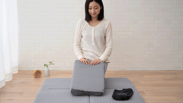 折り紙、そして巻き物から着想し、特許技術を用いることでコンパクトと寝心地を高いレベルで両立させることに成功しました。また、一瞬でパッと広がる使い勝手の良さ、使い終わって収納する際も迷わない、困らないシンプルさも特徴です。