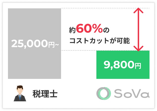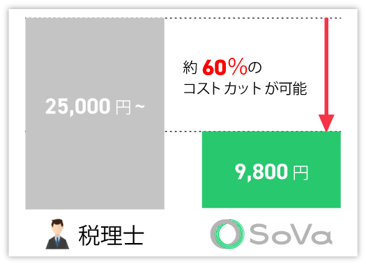 税理士の場合、顧問契約で月額25,000円程度かかるところを、SoVaは圧倒的低価格の9,800円で提供。経営の負担を大きく軽減できます。