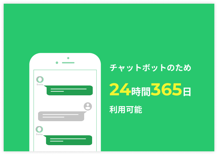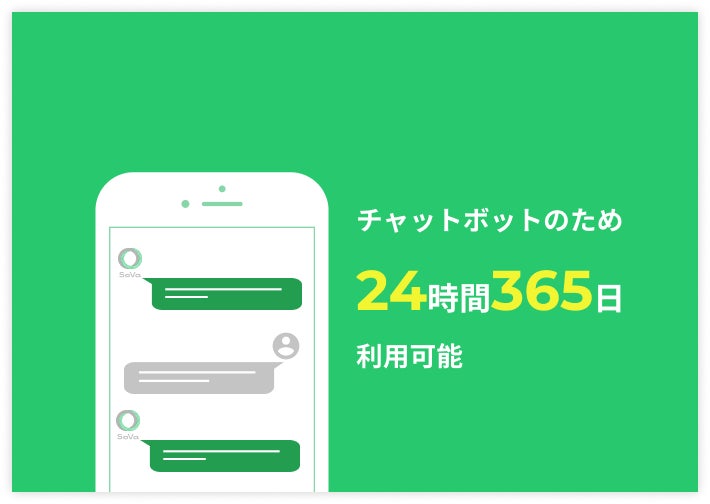 チャットボットを活用したSoVaは、24時間365日利用可能。